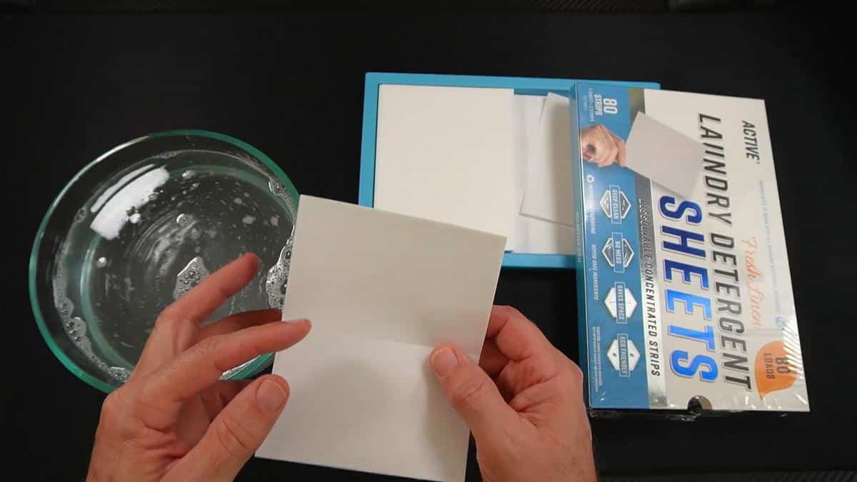 When I evaluated this product, I noticed the sheet begins absorbing water and breaking down within seconds. In the video, you can see that a quick stir in a bowl of cold water is enough to completely dissolve the strip and produce visible suds almost immediately.