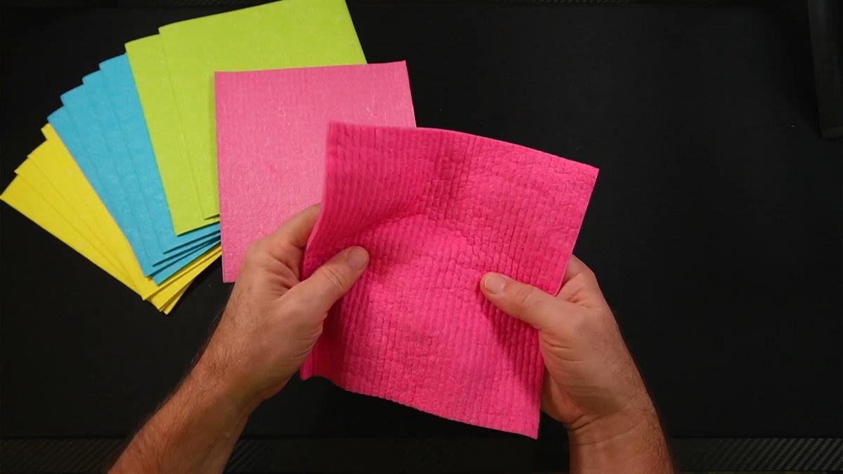 As I demonstrated in the video, I compared one of these cloths directly to a standard paper towel. The cloth is smaller, yes. But it snaps back to its original flat position when you straighten it, something a paper towel can never do without tearing. That resilience adds up over dozens of uses.