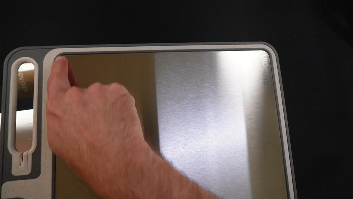 Stainless steel is harder on knife edges than wood or plastic boards. If you use high-quality knives and want to protect their edges long-term, you will need to sharpen them more frequently. The built-in sharpener on this board helps offset that, but it is worth knowing upfront.
