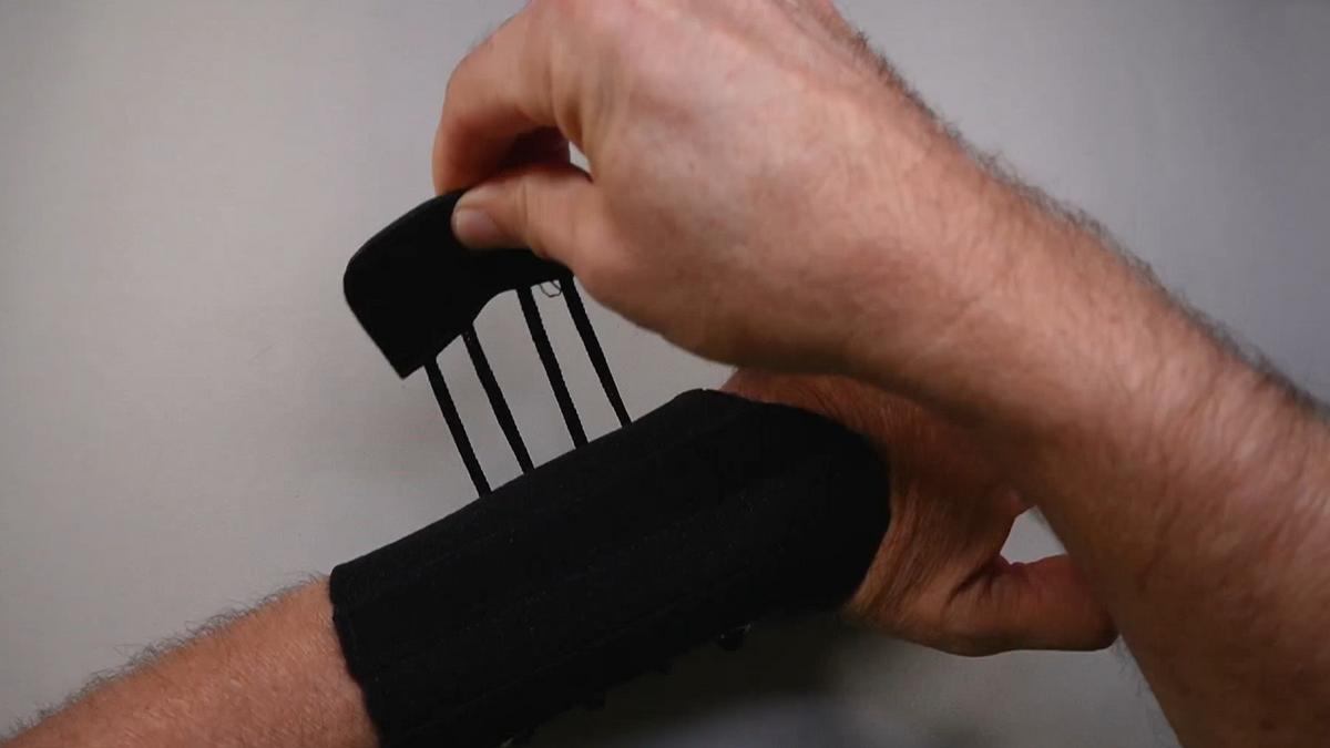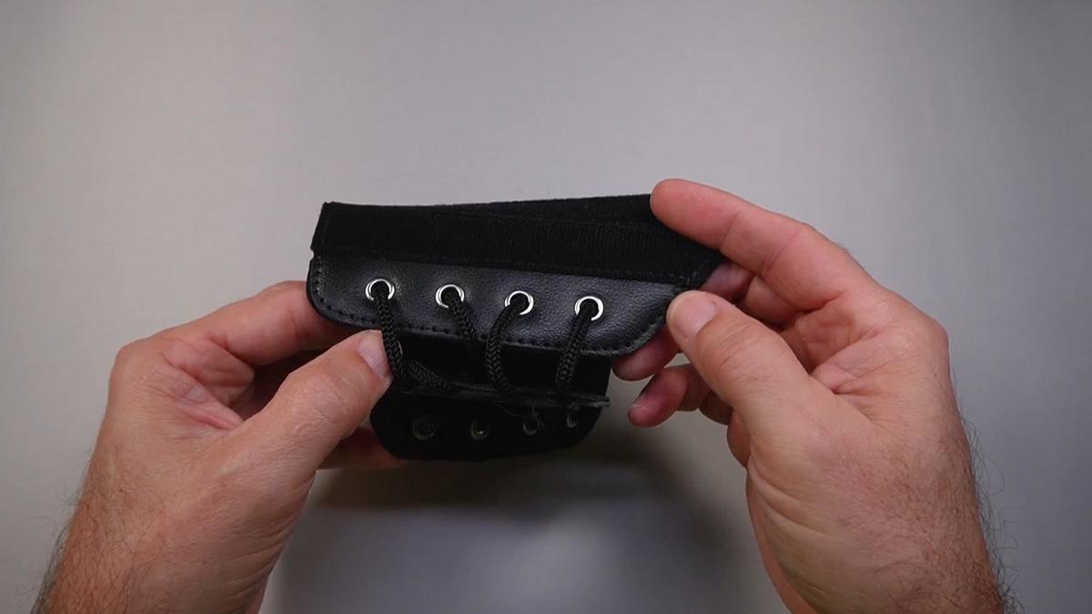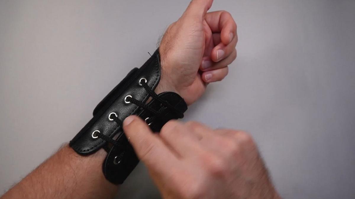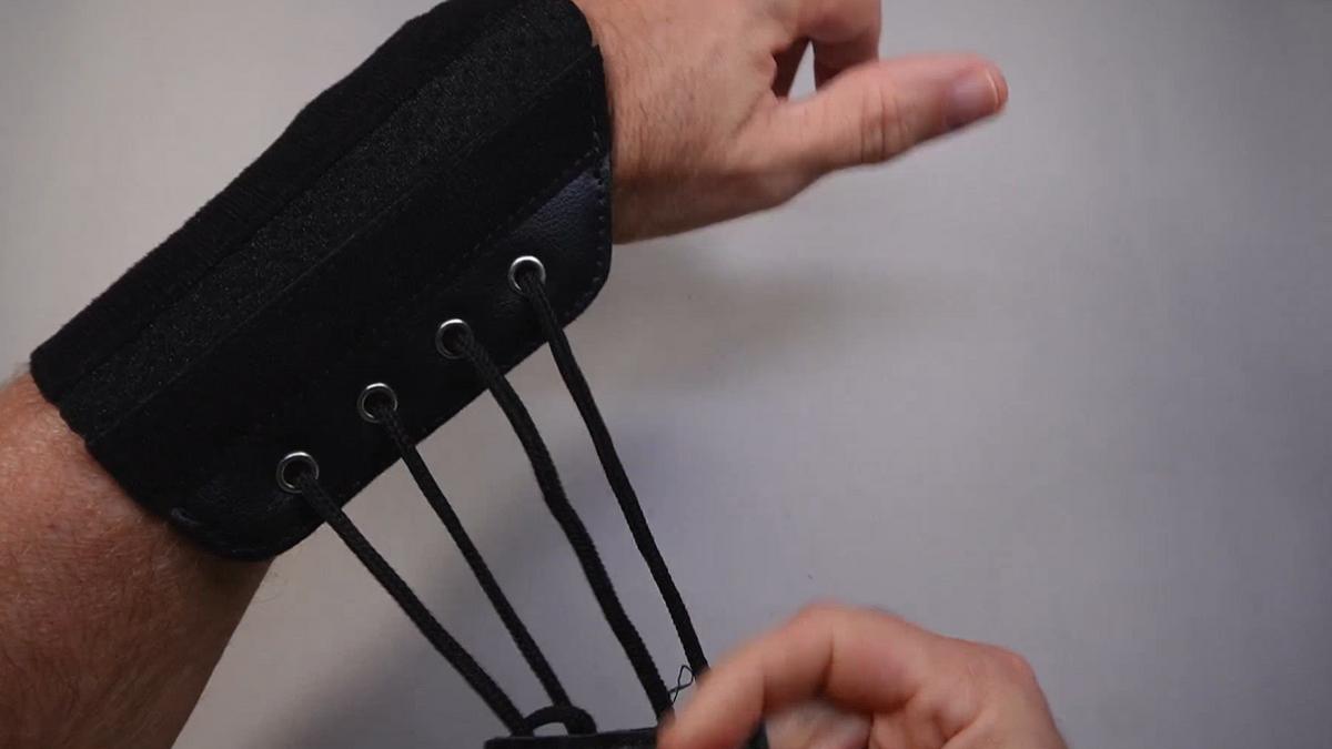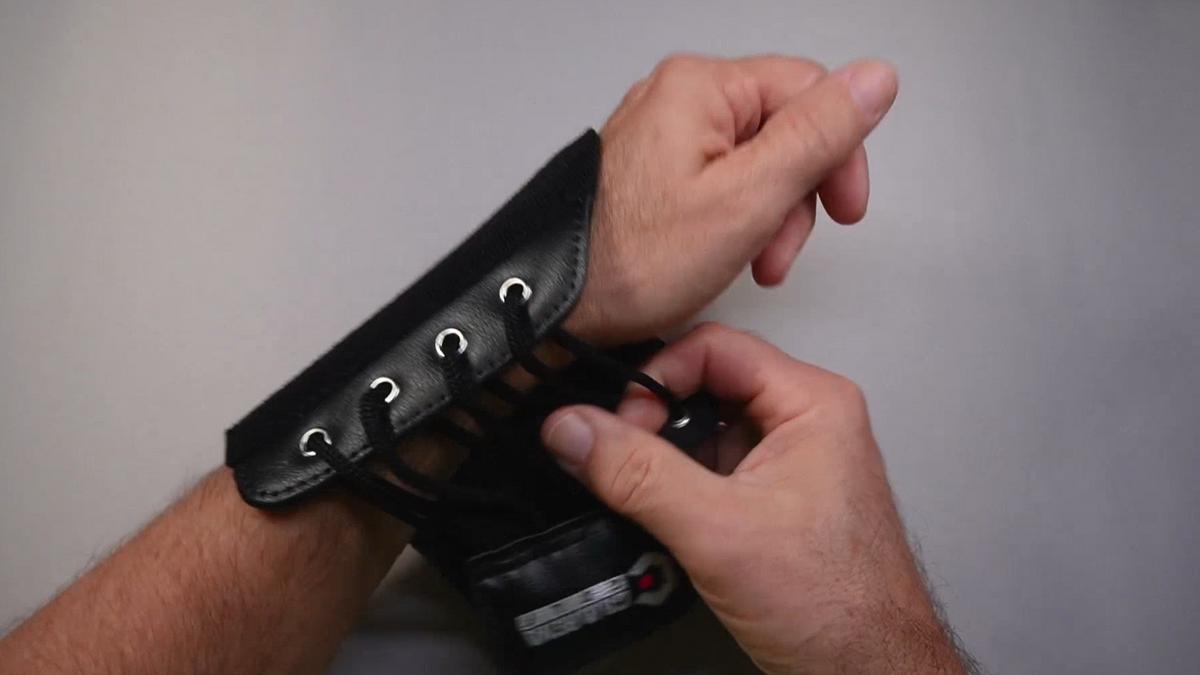 Getting the brace on and positioned correctly is straightforward. Slide it onto your lead wrist, pull it snug, and position it low with the seam aligned to the outer edge of your inner wrist.