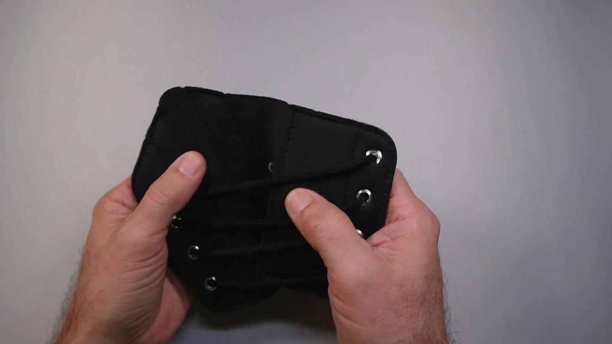 As I demonstrated in the video, the brace is constructed with a soft inner lining that sits directly against your skin and a synthetic leather outer layer with a stitched detail pattern on the outside. It feels more like a quality wrist support than a clunky training gadget.