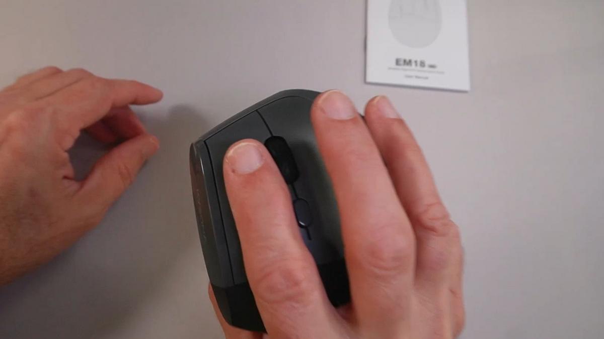 The EM18 is sized for medium to large hands. As I demonstrated in the video, I have average-sized hands and the fit felt natural, with my fingers resting comfortably on the buttons and my thumb reaching the side controls without stretching.