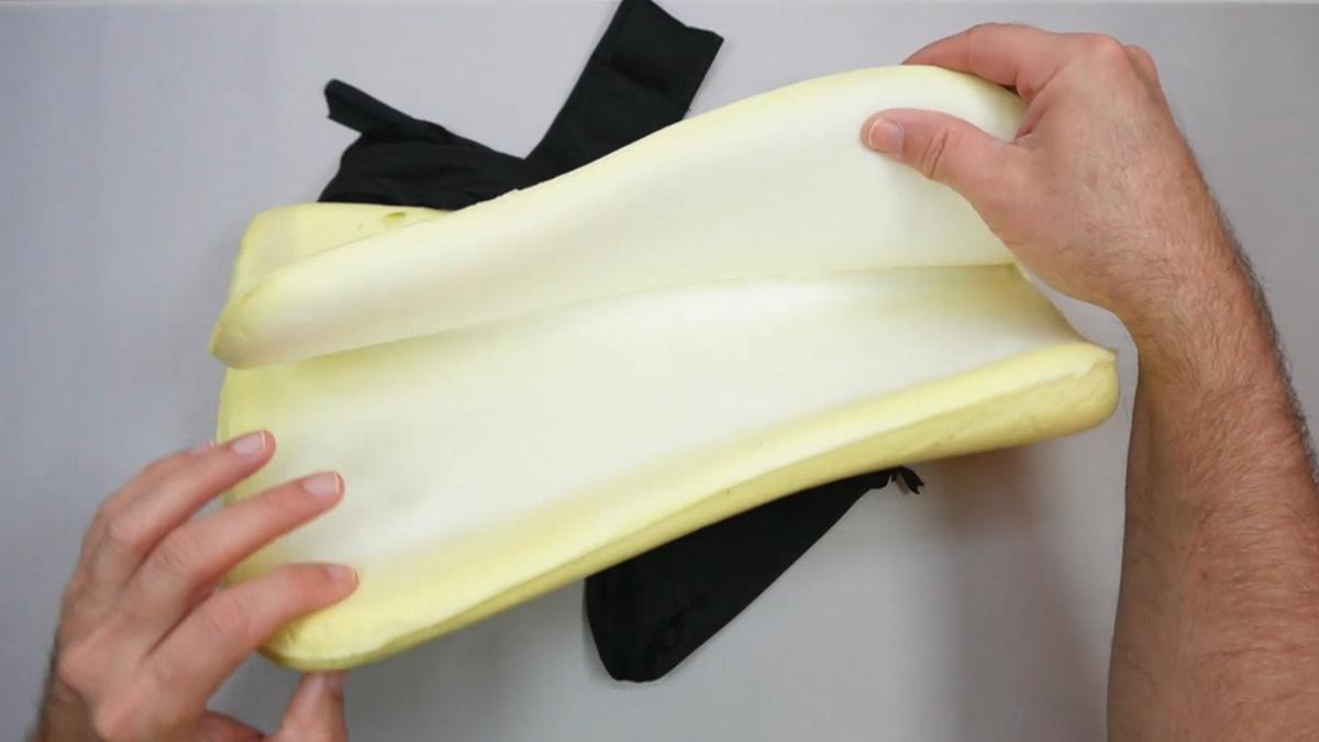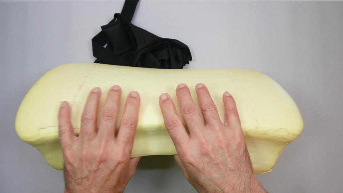 As I demonstrated in the video, the C-curve shape follows the natural inward curve of the lower back. That subtle contouring means your spine is resting in its natural position rather than being pushed out of alignment by a flat surface.