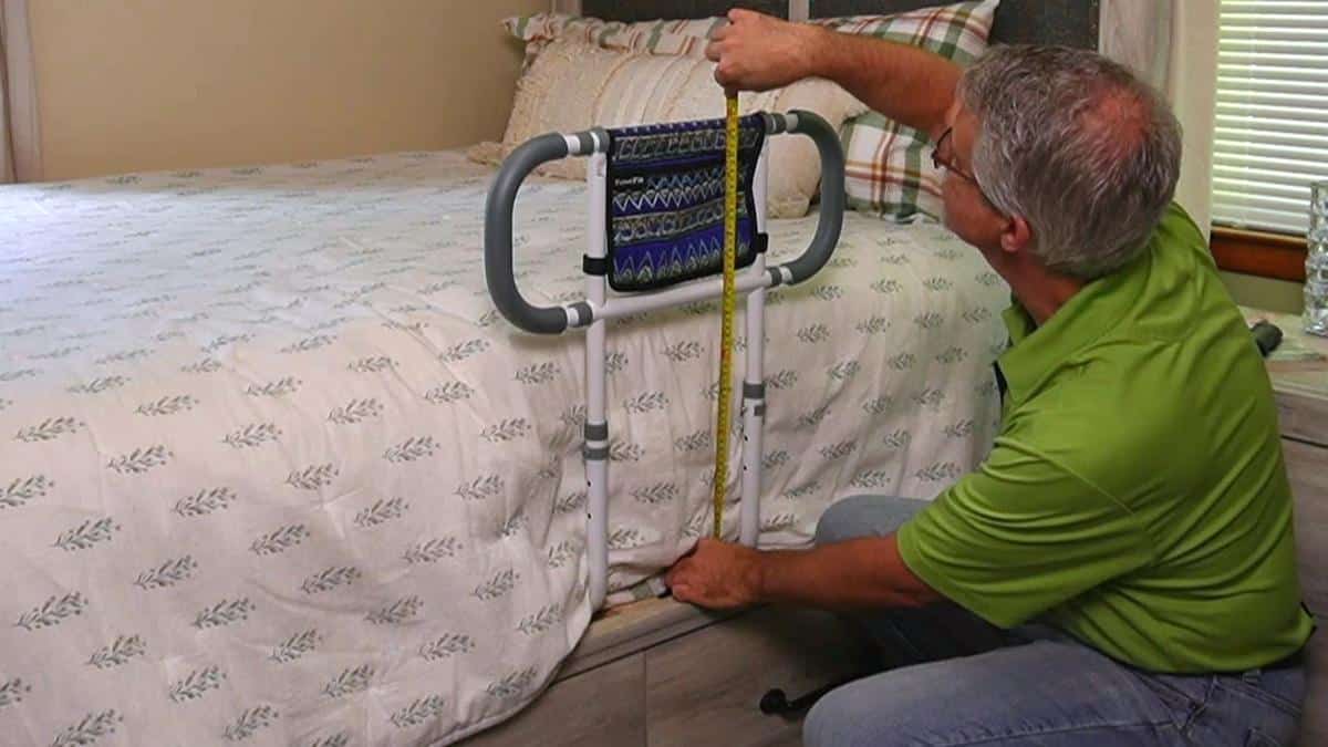 When I evaluated this product, I found that positioning the rail just above hip level is the sweet spot. As I demonstrated in the video, that placement lets you extend your arm at 90 degrees and grab the rail immediately when you wake up, even in a dark room. You do not have to fumble for it.