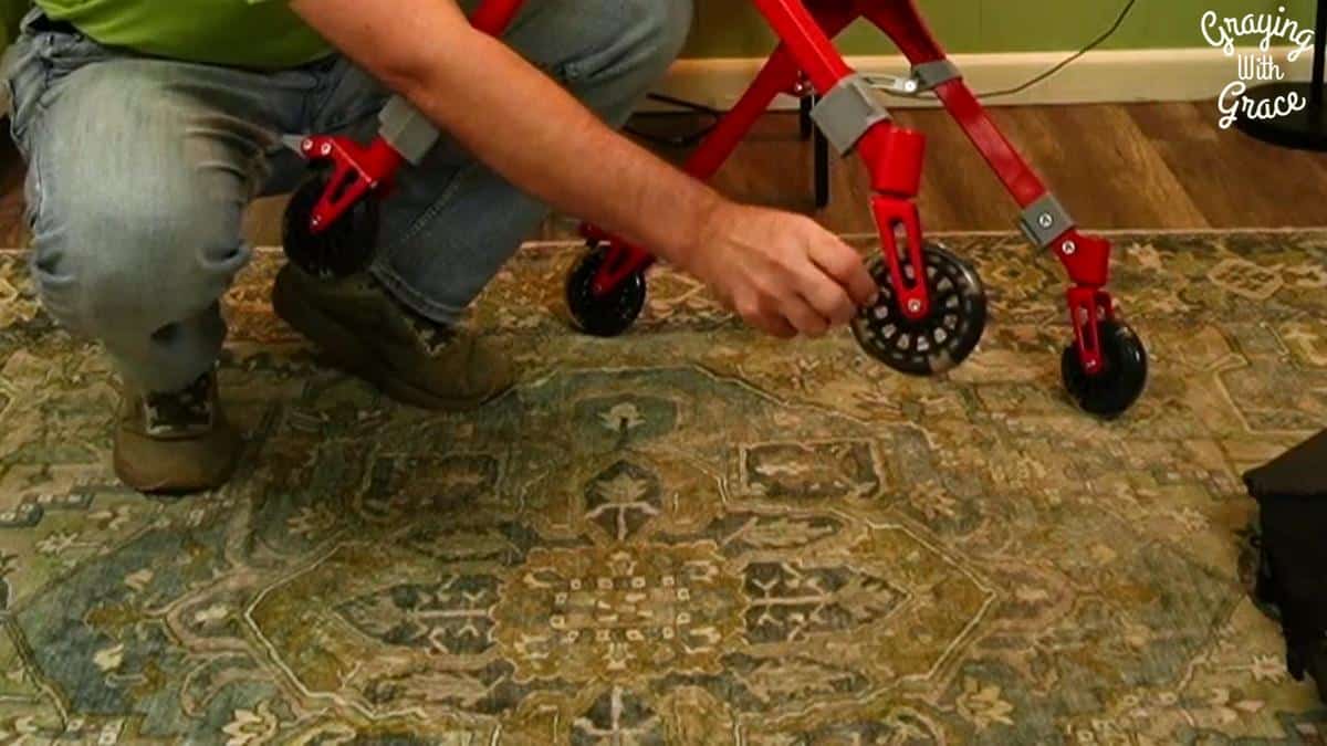 The braking system on the Z35 is different from what most rollator users are accustomed to. Rather than squeeze-style hand brakes on the handles, this unit uses a foot-operated brake system. When it comes time to sit down, you press the foot brake to lock the unit in place. As I noted in the video, you simply use your foot again to release it when you are ready to move.